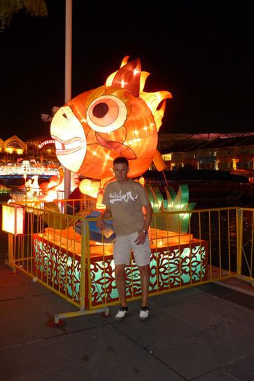 Erst nochmal zum Merlion....ein paar Fotos bei Nacht schießen
