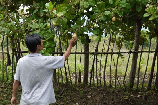 Des Weiteren zeigt er uns noch einen Cashew-Nuss-Baum, der mich total fasziniert hat, da ich bisher nicht wusste, dass Cashew-Nüsse so wachsen. Vor allem war uns unbekannt, dass der Baum außer den Nüssen noch Früchte trägt, die man auch essen kann. Haben wir natürlich auch probiert, schmeckt aber nicht so toll. Die Schale ist etwas zu zäh