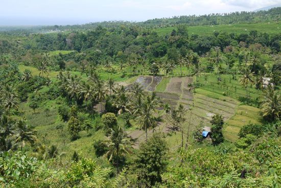Die ersten paar Meter waren noch harmlos und boten einen schönen Blick auf Reisterrassen und die grüne Landschaft.