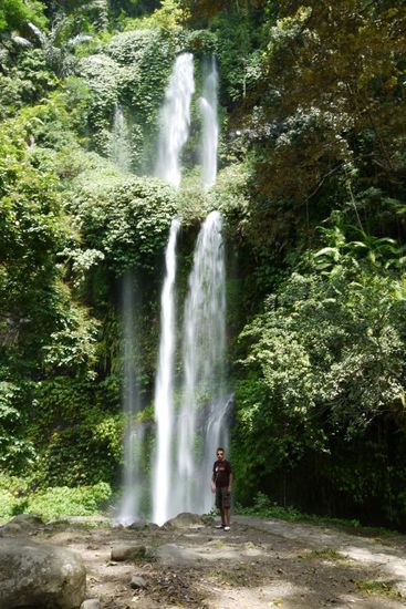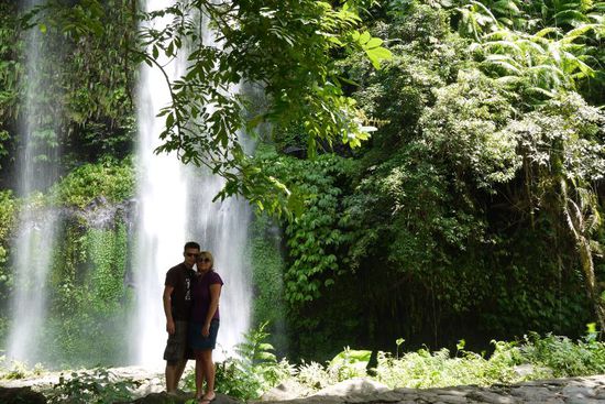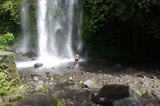 Nach einer guten Stunde Fahrt hat uns der Fahrer zu einem Restaurant gebracht, wo wir uns für die Wasserfall-Tour stärken konnten. Wir sind dann mit einem lokalen Guide zu den Sendang Gila Wasserfällen gegangen, wobei ich mich wahrscheinlich keinen Meter gerührt hätte, wenn ich vorher den Weg gekannt hätte