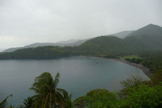 Auf dem Rückweg zum Hotel fing es dann leider an zu regnen, so dass die restlichen Fotos mit Blick auf Lomboks Buchten eher grau ausfallen. Ich bin aber trotzdem froh, dass es erst nachmittags angefangen hat zu regnen und wir fast die gesamte Tour regenfrei überstanden haben.