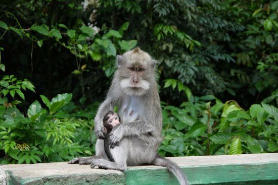 Danach konnten wir uns in aller Ruhe den Affen widmen. Hier galt es einiges zu beachten, um nicht gebissen zu werden. Keine losen Gegenstände bei sich haben (z. B. Sonnenbrille) und nicht mit Futter spielen (also hinhalten und dann wieder wegziehen). Sollte ein Affe auf uns draufspringen, so nicht runterreißen, sondern hinknien und weglaufen lassen. Bei all diesen Regeln hat man ja schon Bedenken, worauf man sich da einlässt. Aber bei uns verlief alles harmlos. Uns wurde weder etwas geklaut noch wurden wir angesprungen