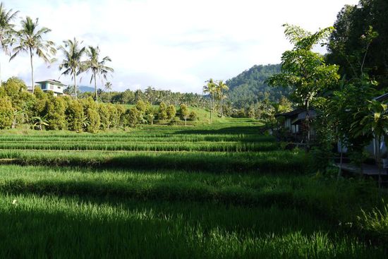 Auch auf dem Weg nach Mengwi zum Pura Taman Ayun, haben wir unzählige Reisterrassen gesehen, die hier anscheinend an jeder Straßenecke angelegt sind.