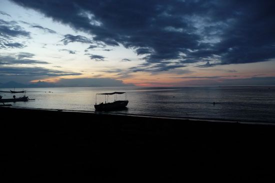 Abends sind wir dann noch zu der nächsten Tauchbasis (Spice Dives) gegangen, um uns nach Tauchgängen und nach einer Delfintour zu erkundigen. Wir haben uns für zwei Tauchgänge an der Menjanganinsel entschieden und noch eine Delfintour dazu gebucht. Anschließend haben wir noch im Restaurant der Tauchbasis gegessen und den Blick aufs Meer genossen.