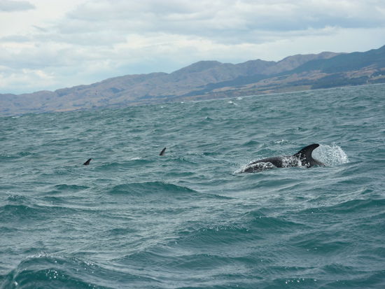Der Ort wirkte auf den ersten Blick nicht einladend. Kaikoura moechte erobert werden. Wir entschlossen uns fuer drei Naechte zu pausieren. Der Ort Kaikoura ist wegen der guenstigen Lage (Meeresboden senkt sich unvermittelt von Flachmeertiefen auf 1,5 km Tiefe) ein beliebtes Ziel fuer Walbeobachtungsfahrten. Und so nebenbei kann man auch mit Delfinen schwimmen. Wer mag, auch mit Pelzrobben.