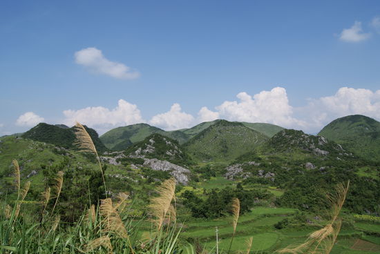 Nach der Wanderung sind wird dann mit dem Auto ein wenig uebers Land gefahren, vorbei an kleinen Doerfern zu einem sehr urtuemlichen riesigen Loch mitten in der Landschaft. Die Landschaft hatte was von dem Karstgebirge in Guilin. Ich denke beides ist aehnlich und es gibt viele Hoehlen etc.