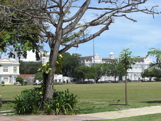 Seit 2008 ist Penang ja nun zum Weltkulturerbe erklaert worden und man kann auch sehen, dass der Staat sehr bemueht ist, die Stadt sauber zu halten durch entsprechende Auflagen die erlassen wurden, allerdings liegen in den Gassen, besonders an den Garkuechen und Essensstaenden doch sehr viel Dreck und Muell rum! Und die ein oder andere Ratte ist mir hier auch schon ueber den Weg gelaufen (was auch kein Wunder ist). Ansonsten ist hier alles gepraegt von der englischen Kolonialzeit. Tolle englische Gebaeude kann man hier bewundern, schoene Tempel jeder Religion und natuerlich auch ne Menge Kitsch und Kram. Am Nachmittag hat es dann auch hier angefangen zu regnen und ich hatte natuerlich keinen Schirm dabei!! (Warum auch?) Zufaellig stand ich da aber gerade vor dem "Khoo Kongsi" Tempel, der auch irgendeinen UNESCO Award gewonnen hat) und bin dann da rein gefluechtet. Schon sehr beeindruckend gewesen! Aber wenn man sich, so wie ich, mit den Religionen nicht auskennt, dann sieht irgendwann ein Tempel aus wie der Andere!! Aber zumindest gab es im dortigen Souvenirladen nen Schirm zu kaufen, den ich mir dann fuer umgerechnet 2,- EUR gegoennt habe. Nach nem ganztaegigen Spaziergang bin ich am Ende dann in der Prangin Mall gelandet, was mal wieder ein Einkaufszentrum in beachtlicher Groesse ist (aber nicht unbedingt Schoen). War ja immer noch dabei, eine Sonnenbrille zu suchen und habe den ganzen Tag nicht einen einzigen Laden mit Sonnenbrillen gesehen! Also rein in den Einkaufspalast!! Erstmal was gegessen, weil der Hunger schon wieder so gross war und dann bin ich da bissl ziellos drin rumgeirrt, in der Hoffnung, paar Flip Flops zu finden und vielleicht ne Sonnenbrille, aber das ist hier wirklich eine Kunst! Ich habe extra nur ein paar Flip Flops mitgenommen von zuhause, weil ich es gewohnt bin, dass man die in Thailand oder Bali an jeder Ecke hinterher geworfen bekommt, aber nicht so hier! Und zwar nirgends wo ich bisher war!! Das ist echt schlimm. Und mit den Sonnenbrillen sieht es aehnlich Bescheiden aus. Aber da habe ich wenigstens am Ende eine einigermassen akzeptable gefunden fuer 15,- MYR.