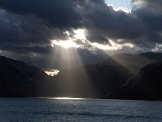 In Måløy nahmen meine Mutter und ich das Schnellboot nach Bergen. Die Fahrt dauerte vier Stunden. Die meiste Zeit verbrachte ich draussen, ich wollte noch einmal die norwegische Luft, den Wind in meinen Haaren spüren. Strahlender Sonnenschein begleitete uns während der ersten Stunde. Anschliessen ging ich hinein, denn es begann heftig zu regnen.