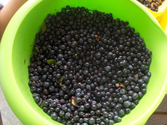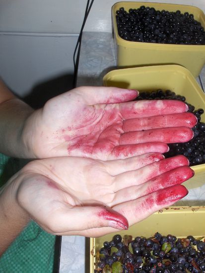 Åse, eine Helferin des Festivals, pflückte bereits am Morgen Heidelbeeren, die wir anschliessend verlasen. Später gesellte sich Liv in die Küche. Sie brachte frischen Seelachs mit. Die Abfälle wurden danach einfach wieder zurück ins Meer gekippt. Alles ganz unkompliziert. Den ganzen Nachmittag war ich mit Heidelbeeren verlesen beschäftigt. Dementsprechend rot waren meine Hände. Falls einem mal Farbe auf ein Kleidungsstück kommen sollte, bringt man sie am besten mit Zitronensaft weg. Ein Tipp von Åse.