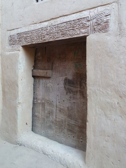 manche Hauseingänge haben besonders schöne Türstürze - Akazienholzbalken mit dem eingravierten Namen von Zimmermann und Hauseigentümer, dem Baudatum und einem Koranvers.