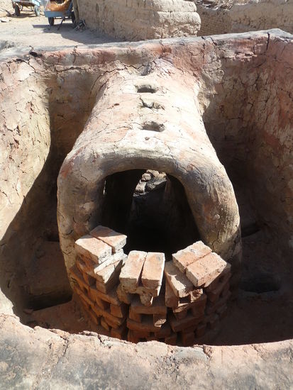 Unmassen werden produziert und gerade wird einer von den zahlreichen Brennöfen bestückt. Die Keramik ist schon halb an der Luft und der heißen Sonne gebrannt, wird dann aber noch weiter gebrannt. Auch hier ist die Verkaufsstrategie nicht aggressiv. Man zeigt uns die Sachen und wenn wir abwinken ist es gut.