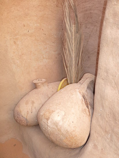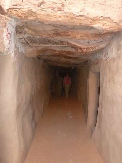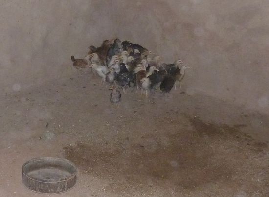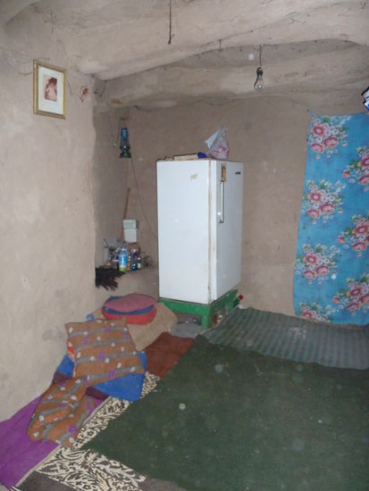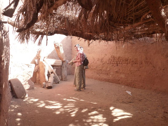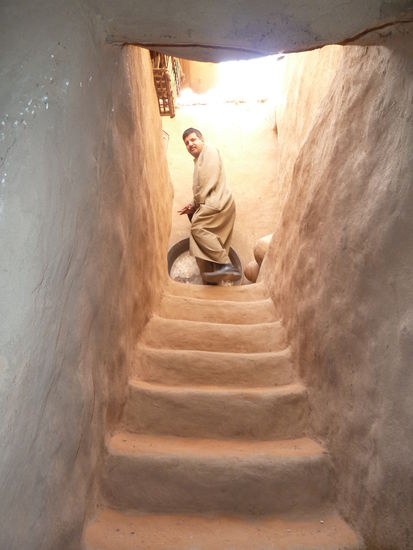In einem hinteren Raum liegt auf einem großen Korb jede Menge Brot, nach Auskunft der Frau Futter für die Hühner auf dem ersten Stock. Abdul erklärt uns, dass die Frau Witwe ist und kein Geld hat, um in eines der neuen Häuser zu ziehen. Daher lebt sie hier und hält auf dem ersten Stock, wo früher das Schlafzimmer war, Hühner, ganz viele kleine.