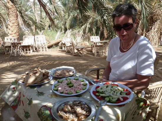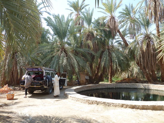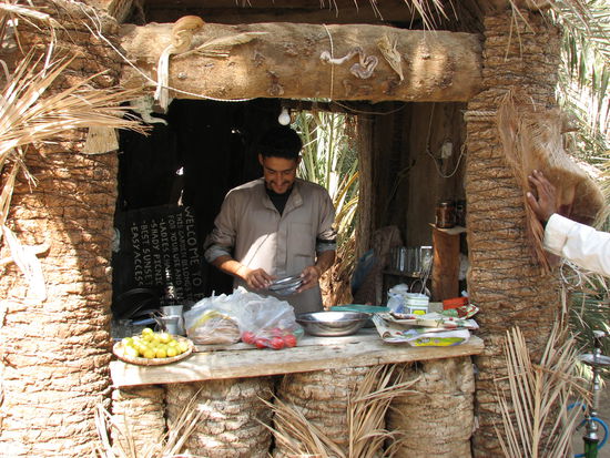 Das idyllische Plätzchen muß man einfach genießen. Dabei kann man den Einheimischen bei der Dattelernte zuschauen.