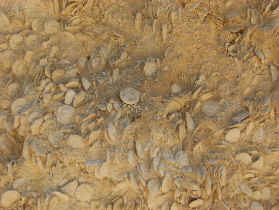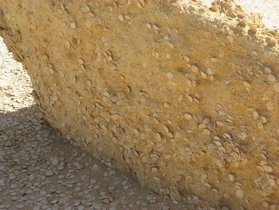 Der Platz liegt wunderschön im Schatten eines Riesen'knubbels', den wir umrunden und wo Ulrike eine Art 'versteinerte Münzen' findet und sammelt. Es gibt sie von der Größe eines ass-protect bis zum 2€-Stück.