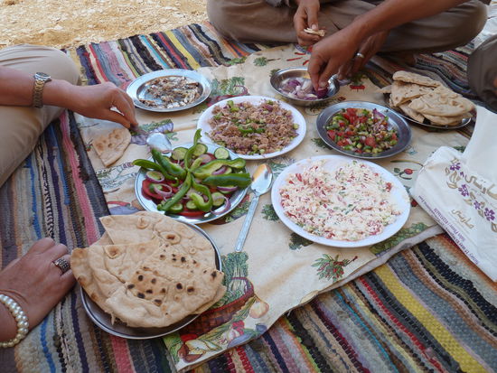 Dort wird dann von den beiden Fahrern wieder Lunch zubereitet. Ölsardinen, Käse, Thunfisch jeweils lecker angerichtet, geschnittene Gurken, Tomaten und Paprika sowie Fladenbrot.