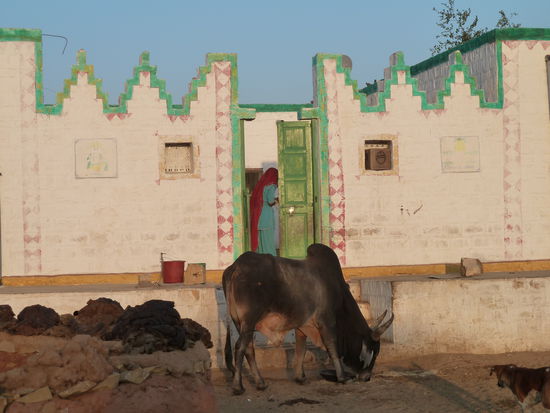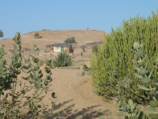 Nach Rückkehr müssen wir noch eine geraume Zeit auf ein dürftiges Frühstück (Kaffee und Toast - ohne alles) warten. Danach sind wir fast die ersten, die mit Fahrer Richtung Jaisalmer aufbrechen.