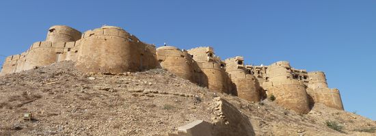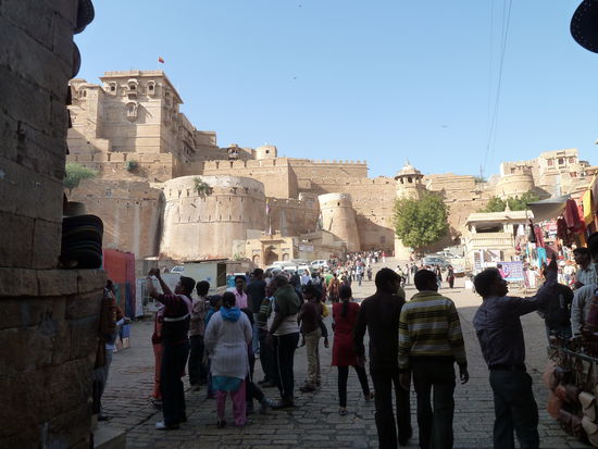 Sodann begeben wir uns zu Fuß zu dem herrlich auf einem Bergrücken thronenden Fort Jaisalmer.