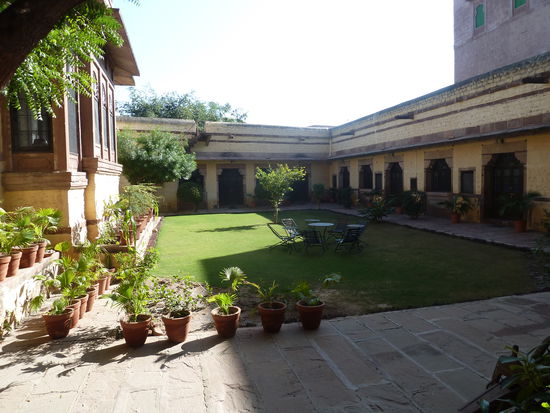Auf meinen Wunsch fahren wir nach Luni rein, wo wir uns das kleine Fort anschauen, das zu einer Oase der Ruhe als Heritage Hotel umgebaut wurde.
