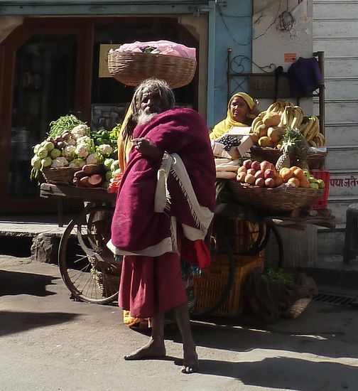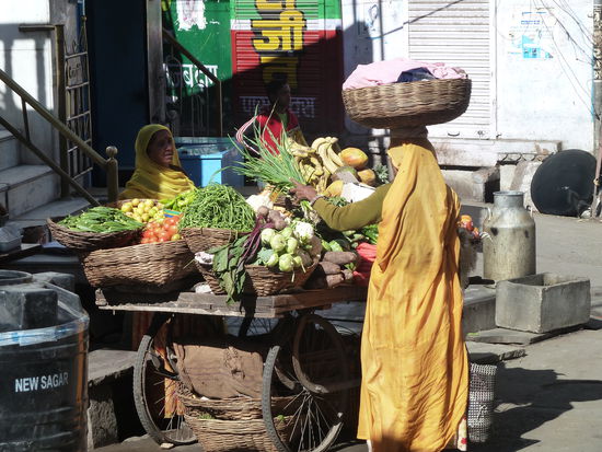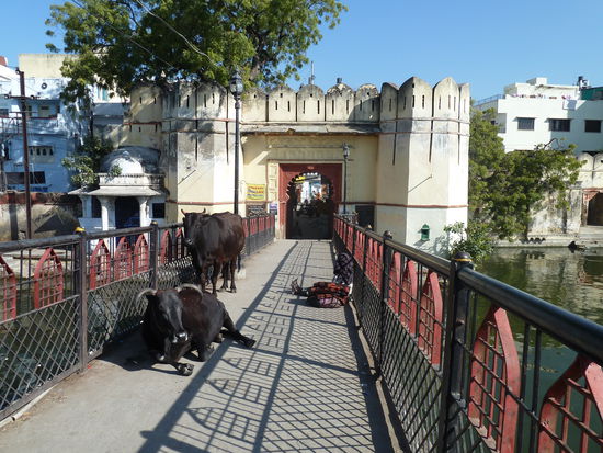 Den Jagdishtempel unterhalb des Schlosses schauen wir nur von außen an und betrachten lieber das quirlige Treiben auf der Strasse.