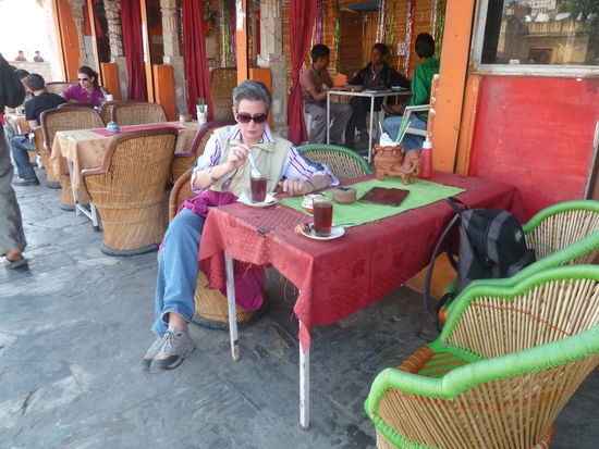 Nach dem Besuch haben wir dann gerade noch Zeit an der Brücke einen Tee zu nehmen, um den 15.00 Treff am Thamla Haveli zu erreichen.