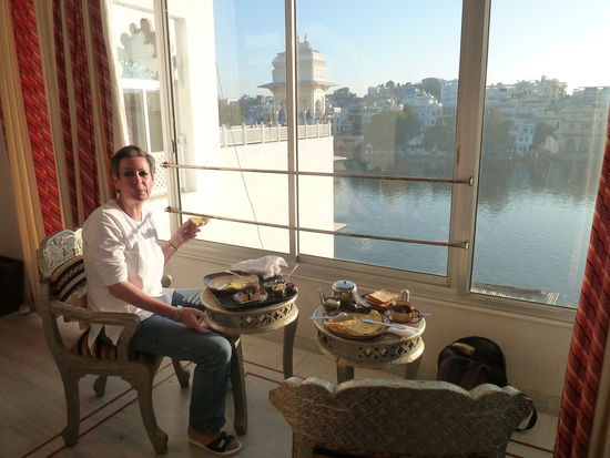 Wir frühstücken auf dem Zimmer, um den Ausblick noch zu genießen. Außerdem ist es noch zu kalt für die Dachterrasse.