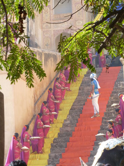 Ulrike fühlt sich noch immer nicht gut - sie bleibt im Bett und ich lasse mich von Randher zum 11 km entfernten Amber Fort bringen. Wir sind gegen 9.00 Uhr dort und sehen schon die Elefanten mit Touristen hoch'tigern'.