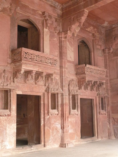 Nachdem ich gestern Nacht Remmidemmi wegen des Krachs gemacht habe, hatte es sofort aufgehört mit dem Stühlerücken im Restaurant. Pünktlich um 8.00 Uhr fahren wir wieder los auf Mammuttour. Kurz vor 9.00 Uhr erreichen wir Fatehpur Sikri. Auch hier ist wieder ein Shuttlebus eingesetzt, den wir für 10 Rs für die Hinfahrt nutzen. Oben angekommen sind die Guides wirklich aufdringlich. Da muß Ulrike wieder die Hauptschullehrerin rauskehren und dann klappt es auch in Indien.