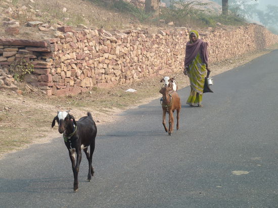 Kurz vor 11.00 Uhr erreichen wir die Autobahn N8 bei Bharatpur - hier sind jede Menge Ziegeleien - erkennbar an schlanken viereckigen Schornsteinen ohne Gebäude. Bald dahinter ist die road closed - der Umweg führt über kleine bis kleinste Strassen durch umso kleinere Dörfer.
