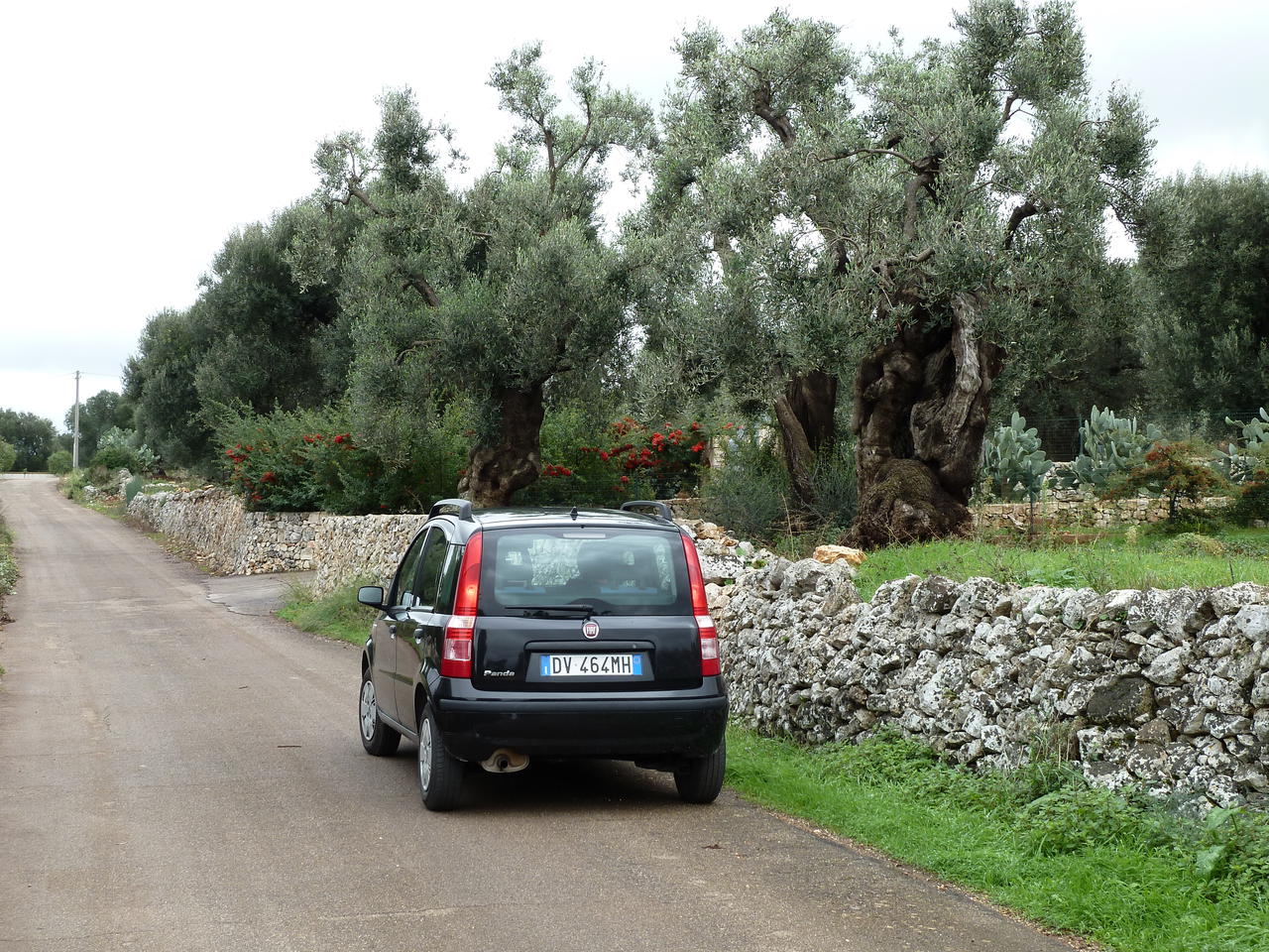 Landschaftlich hat Apulien nicht allzuviel zu bieten; unendliche Olivenhaine geben - wenn man denn mal auf einem Hügel einen Rundumblick hat - eine einheitliche Farbgebung. Die Olivenbäume sind z.T. sehr alt (z.T. mehr als 500 Jahre) und bringen jährlich noch Ernten von 200kg und mehr wie wir gelernt haben. Die knorrigen Stämme sind hoch interessant anzuschauen, wenn man durch die Haine wandert.