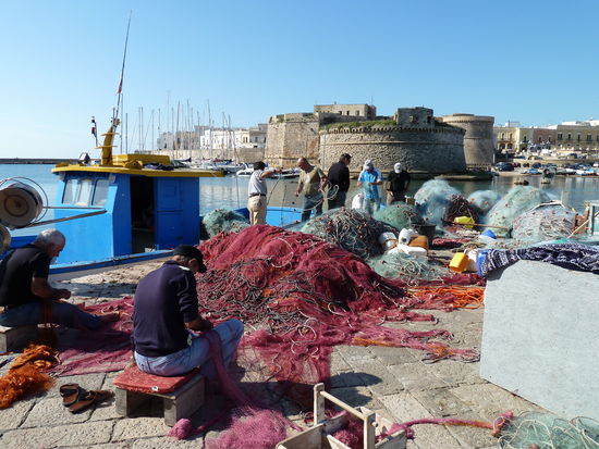 Weitere Kastelle befinden sich in Lecce, Oria, Otranto und Gallipoli. Da wir das erstgenannte nicht fotografieren und besuchen konnten (eingerüstet und verregnet), die nächsten nicht besucht haben, sei der Vollständigkeit halber das - auch leider geschlossene - aber wunderschön zwischen Alt- und Neustadt gelegene Kastell von Gallipoli behandelt.