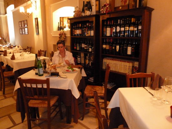 Danach suchen wir das vom Reiseführer empfohlene Il Guercio di Puglia auf um uns für die nächste Runde zu stärken. (U Rindercarpaccio/ H Büffelmozarella mit Tomaten, U Nudeln mit Pilzen und Fleischbällchen/ H Nudeln mit halbem Hummer 11€!, würziger Wein aus Locorotondo, Wasser)