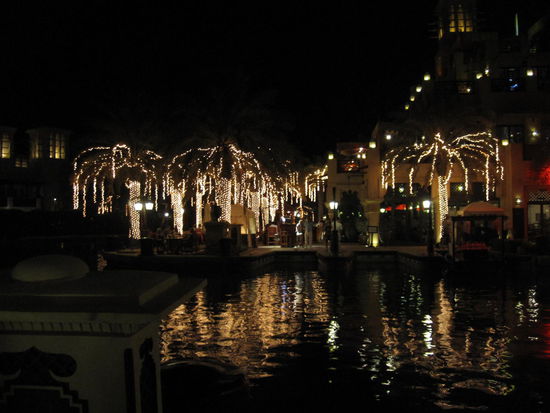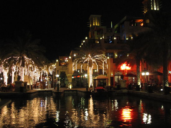 Alternativ kann man abends auch ins Madinat Jumeirah, eine grosse Freizeit/Shopping/Hotelanlage mit ganz suessen Kanaelen, die sich hindurchschlaengeln.