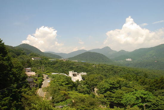Ab Gora ging es dann mit der Cablecar und Seilbahn nach Owakudani auf 1044m höhe in der Hoffnung von da aus den Fujijama zu sehen.