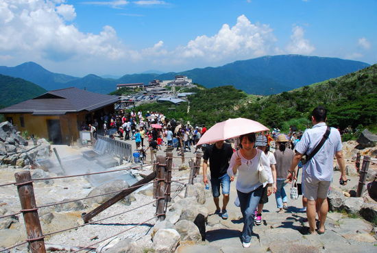 Zunächst sah man nur jedemenge anderer Touristen die sich köstlich über Onsen-Eier her machten.