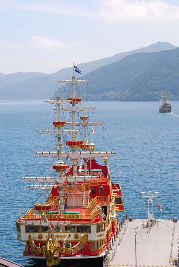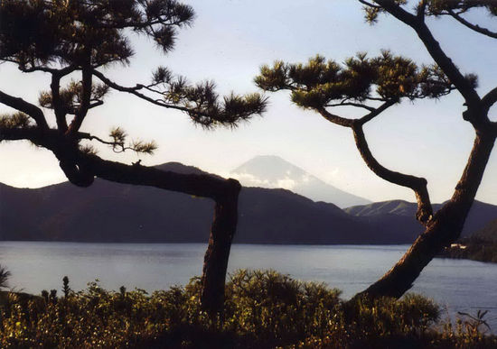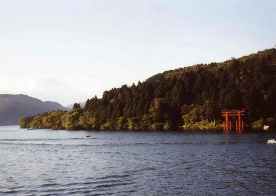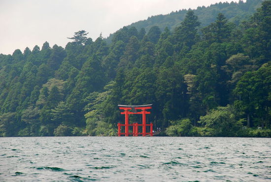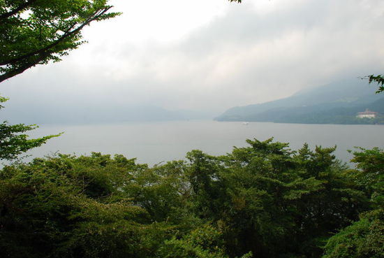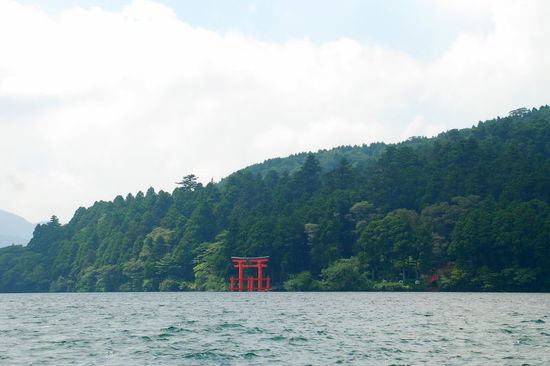 Von Moto-Hakone aus hat man bei schönem Wetter einen schönen Blick über den Ashi-See, einem Torii und normalerweise auch dem Fujijama. Diesmal aber hatte ich Pech.