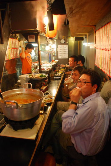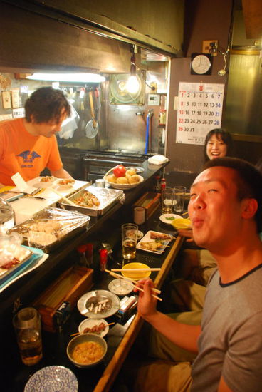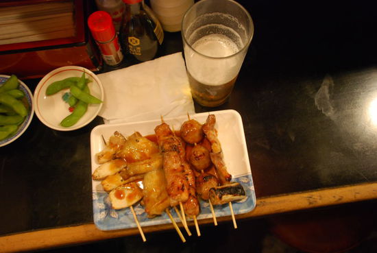 Dann war es auch schon dunkel und der Magen knurrte. Neben dem Bahnhof fand ich dieses Fressgasse. Überall gab es was leckeres, aber ich wollte Yakitori - Spieße vom Holzkohlegrill.