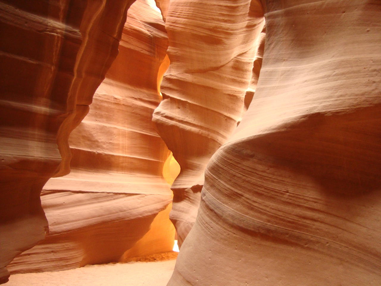 Der Antelope Canyon ist ein Slot-Canyon, d.h. er ist sehr schmal, aber hoch. Er wurde und wird durch Sturzfluten, die nach starkem Regen in der Gegend runterkommen, geformt. Durch die Sonneneinstrahlung und den Sandstein ergeben sich wahnsinnig tolle Bilder!