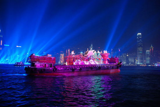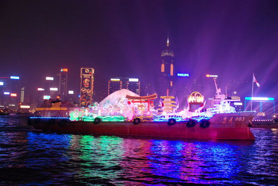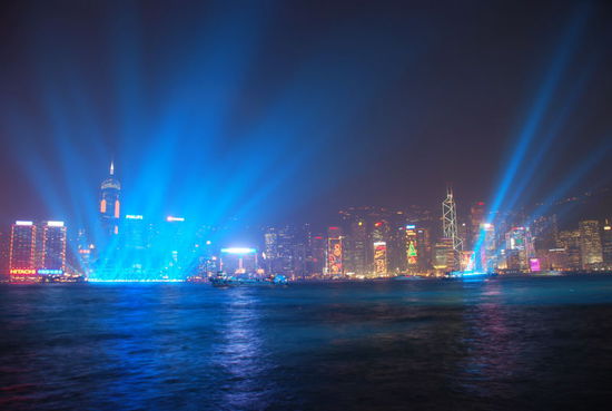 Am Vorabend der Eröffnungsfeier gab es die Generalprobe vor der imposanten Skyline von HKG-Island.