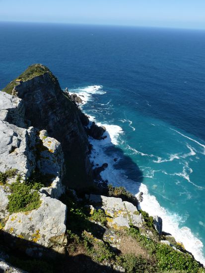 Auch heute haben wir wieder ein herrliches Wetter, es ist warm und es geht ein leichter Wind. Wir fahren bis zur Bahn, die hinauf zum Leuchtturm fährt. Von hier oben hat man einen weitern Blick aufs Meer und auf den Felsen, der als Kap der guten Hoffnung beschrieben ist.