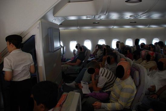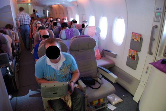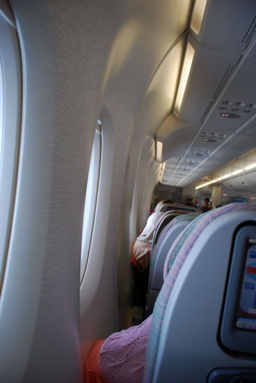 Noch vor dem Start wurde ich gefragt, ob ich den Platz für eine "Familienzusammenführung" tauschen würde. Da dieser auch ein Fensterplatz sein sollte, habe ich zugesagt.