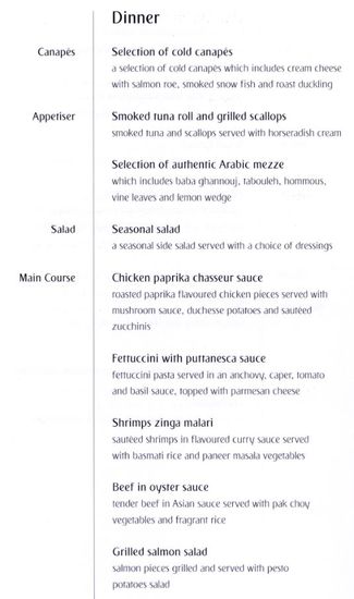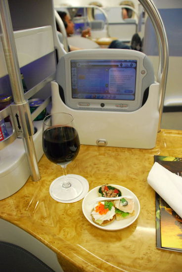 Umfangreiches Speise- und Getränkeangebot in der Business-Class.