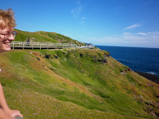 Fürs Abendbrot machten wir ein Super Schnäppchen. Im Supermarkt erspähten wir "reduced Chicken" und so kauften eine gebratenes Huhn für 3,50$... geschenkt! Mit dem Proviant machten wir uns auf in den Westen der Insel (The Nobbies). Hier gab´s spektakuläre Ausblicke mitunter auf die Seal Rocks . Das in Kombination mit unserer Ente, einfach super!