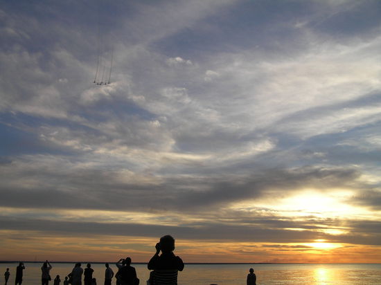 Unser Highlight in Darwin war der abendliche Night Markets am Mindil Beach. Es gab jede Menge Stände für irgendwelchen unnützen Krimskrams und massig Essensbuden. Besonders die Asiatischen hatten mich hingerissen, somit konnte ich es nicht lassen mir ein paar verschiedene Curry´s zu kaufen. Konrad blieb dagegen standhaft. Der Besuch der Markets wurde gekrönt mit einer Flugshow von 6 Jets. Die Piloten flogen verschiedene Figuren vor der untergehenden Sonne, fantastisch!