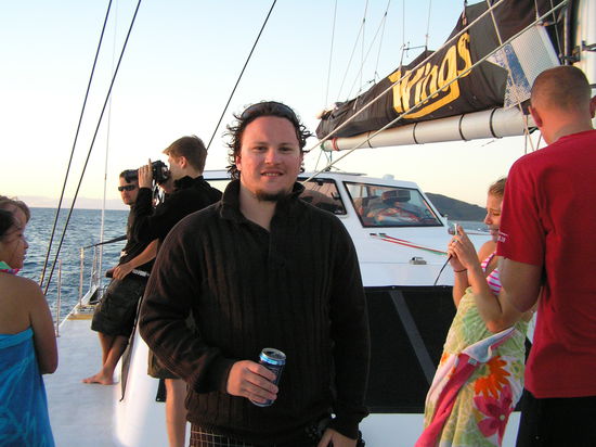 Konrad machte es sich die 4 Tage im Hostel bequem und für T-jay und mich ging es Mittag auf unser Segelboat. Es war ein großer Katamaran der bis zu 25 Leute unterbringen konnte. Dieser Kahn war wie ein großes Hausboot, es war einfach alles vorhanden was man sich vorstellen konnte. Neben Generatoren für Wasseraufbereitung, Massig Tauchausrüstung, Jacuzzi, BBQ und einem riesigen Flat Screen gab es richtig leckeres Essen was immer von einem der Crew- Mitglieder frisch zubereitet wurde.