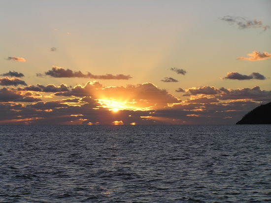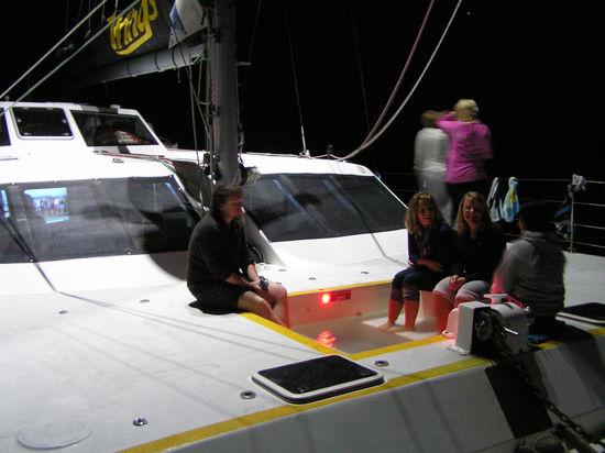 An diesem Nachmittag machte ich auch gleich meinen ersten Tauchgang. Es gab massig bunte Fische und Korallen zu sehen. Das Highlight auf bei dem Tauchgang war der hoch giftige "Lionfish"! Wieder am Boot angekommen gab es auch gleich Snacks für uns. Nebenbei ließen wir die Beine im warmen Jacuzzi baumeln und schauten uns den Sonnenuntergang an. Das richtige Abendbrot bestand dann aus Salaten, Kreuterbagutte und Steaks vom BBQ. Wie ihr schon merkt wurden wir ziemlich verwöhnt, aber man segelt ja nicht jeden Tag hier herum&. Abends gab es auf den großen Bildschirm die erste Slideshow mit Bildern des ersten Tages. Nach ein paar Bier und netten Smalltalks ging es dann auch schnell in die Koje.