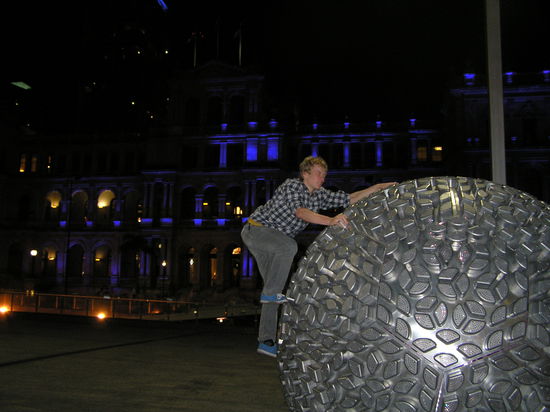 Zum Abendbrot ist dann noch folgendes passiert. Ein anderer Gast aus dem Hostel setzt sich neben uns um auch sein Abendbrot zu genießen. Er liest dabei eine australische Klatschzeitschrift und was sehen wir auf dem Titelblatt??? Den Rugby Spieler aus der Bar von gestern und darunter stand, dass er gegen 4 Uhr aus dem Casino geflogen ist und die Polizeistation dann gegen 7 Uhr morgens verlassen hat! 