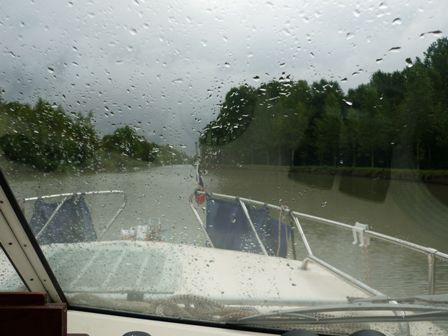 Mein Engelchen zieht die regenfeste Kleidung an und ich richte mich ein unsere Julia von innen zu steuern. Doch bevor es mit Betriebsstundenstand 1775,7 kurz vor 09.00 Uhr los geht, haben wir wie immer gut gefrühstückt. Bereits 3 Stunden später und 5 Schleusen weiter machen wir im Sportboothafen von Lagarde fest.