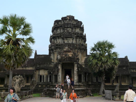 Das Eingangstor von Angkor ist sehr imposant und das schoene hier in Kambodscha ist, das die Leute echt entspannt mit ihren Kuturguetern umgehen. Soll heissen,es ist erlaubt!! auf ihnen herumzuklettern. Was manchmal zugegebenermassen auch halsbrecherisch sein kann. Also Augen auf beim Tempelkauf - Quatsch natuerlich Tempelauf.