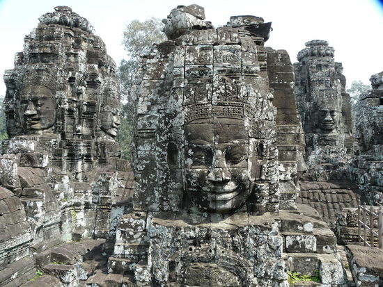 Bayon mit seinen grossen Tuermen bestehend aus 4 Gesichtern - HERRLICH! Ta Prohm, wo ich vergeblich auf Angelina gewartet habe, dafuer aber unglaubliche Wurzelstraenge bwundert habe, die sich auf und durchs Gemaeuer gemogelt haben. Einfach unglaublich und wieder allen physikalischen Gesetzen. Da wars auch mit Abstand am Schwersten, die Illusion des einsamen Tempels herzustellen. Zum Teil musste man auf seinen Fotoshot auch schon mal 10 Minuten warten. Was mir ja nicht schwerfaellt, bin schliesslich die Geduld in Person. Leider aber war der Accu meiner Kamera letztlich nicht mehr so geduldig und ging irgendwann einfach aus. Kann man nichts machen. Damit beendeten wir dann aber auch unsere Tour fuer den heutigen Tag. Jetzt ueberlegen wir noch, ob wir schnell noch ein kamdoschanisches Kind adoptieren sollen. Vielleicht treff ich Angelina dann dort. Die Kinder hier sind wirklich zuckersuess. Den ersten Satz den sie lernen ist: only one Dollar Madam, you want buy something??