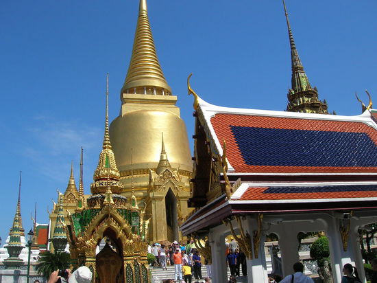 350 BHT Eintritt geblecht und die kritische Klamotteninspektion erduldet und schon waren wir drin in Prunk und Gloria. Unglaubliche Tempelanlagen in Huelle und Fuelle. Eine goldiger als die andere. Alles auf einmal. Kutureller Overkill fuer die Sinne. Ich empfehle umbedingt eine Sonnenbrille, da sonst das Augenlicht ernsthaften Schaden nehmen koennte.